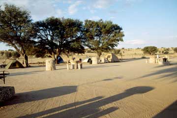 tiny Mata Mata Camp and the upper Auob Valley to the upscale Twee Rivieren