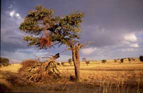 exposing predators to full view and wildlife clings to the waterholes. A multitude of migrating birds